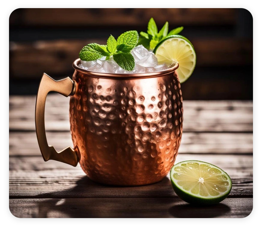 • 2. Mezclar con hielo y servir en un vaso de cobre